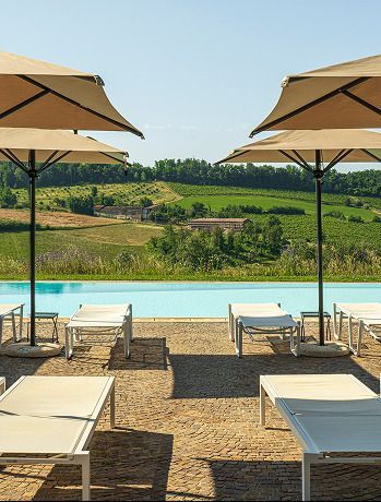 Per liberare la mente, basta affacciarsi alla balaustra del gazebo e lasciare che lo sguardo, lentamente, segua i morbidi disegni di vigneti, colline e borghi antichi. Indugiare nella diversità e alternanza dei colori: pennellate su un paesaggio sempre mutevole. Esercizi semplici, ma capaci di zittire i pensieri.